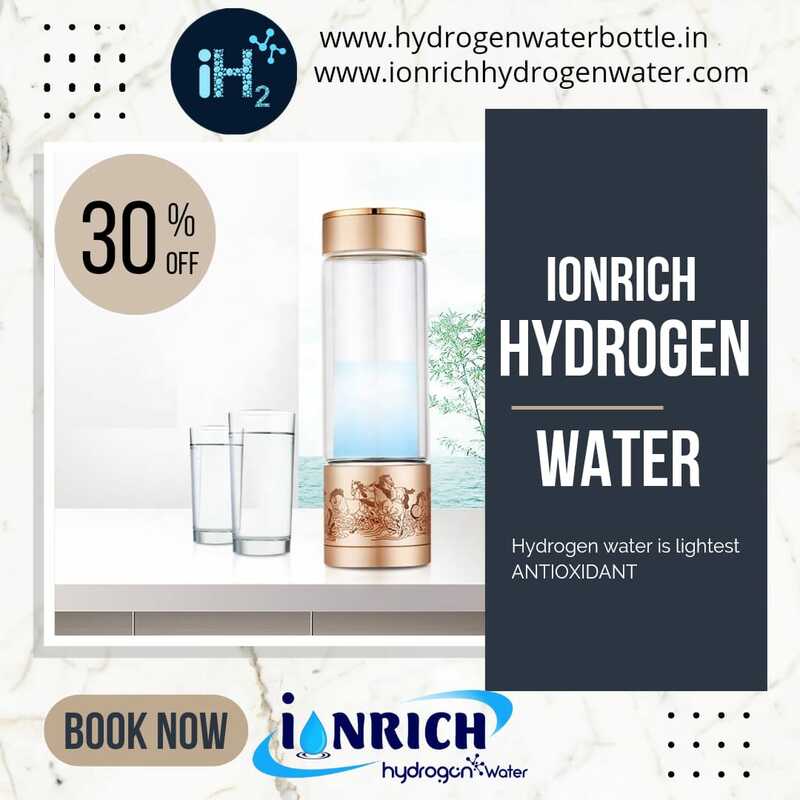 DESCRIPTION OF IONRICH HYDROGEN WATER • Ionrich hydrogen water bottle generates 800-3000ppb level of hydrogen which is recommended as safe to drink and have therapeutic heath benefits. • Ionrich hydrogen water bottle came with Free TDS controlling valve, TDS meter and cleaning solution. • TDS controlling valve is installed in your RO system where you can set TDS level of water between 100-200ppm (as per WHO standards). • TDS play very important role in Hydrogen water. For more information contact us mail us call us and follow us on YouTube, Facebook, and Instagram. IONIZATION TECHNOLOGY: - • SPE/PEM Technology: 5 GENERATIONS Molecular Hydrogen Generator Produces BEST ANTIOXIDANT for YOU. • Molecular hydrogen is a NOVEL ANTIOXIDANT to efficiently reduce oxidative stress and improvement of mitochondrial diseases. ELECTROLYSIS PLATE: - • Ti Titanium medical grade Plate ASTM Eli with 99.9% platinum coating. (Patented sintering technology with IONRICH HYDROGEN WATER) SECRET OF WATER TDS (Total dissolve solids or mineral levels) LEVEL • It is very important to keep in mind the fact that the TDS level of your water (Total dissolve solids or mineral levels) plays an important part in determining the pH level of the water. • Based on our research and the testing of nearly 50000 samples of RO water at each and every home of our customers, we have found that the TDS level of RO water is much less than 50ppm, which has resulted in an acidic pH level, i.e. 2.5 pH to 5.5 pH level, which is causing the RO water to have an acidic pH level. • This is why we must first correct the TDS level of water, which is 100 ppm to 200 ppm as per WHO standards. Once the TDS level of water has been reset to 100 ppm it then reverts to the 6.5 ph to 7.5 ph (neutral) range. BUY IONRICH HYDROGEN WATER BOTTLE • PEM ionization technology. • 100 pure platinum coated plates • FREE TDS controlling valve (Installed in RO) • FREE TDS meter (To measure your TDS level) BUY NOW BLOG Which is better Hydrogen water or alkaline water? https://www.hydrogenwaterbottle.in/pages/which-is-better-alkaline-water-or-hydrogen-water-/62b7fc0c322711000145f24f Ionrich Hydrogen water benefits in Brains and Neuro. https://www.hydrogenwaterbottle.in/pages/brain-stroke-and-hydrogen-ih2-research/62b326df76ac270001bdffac FAQ (Frequently asked question) clear your doubts. https://www.hydrogenwaterbottle.in/pages/faq/628e7918c943f30001239041 Ionrich Hydrogen water benefits in Cancer https://www.hydrogenwaterbottle.in/pages/cancer-and-hydrogen-water-research/62921b52155ad000017bc052 We are leading supplier and manufacturer of hydrogen water machine, hydrogen water bottle, hydrogen water purifier, hydrogen inhalation machine, hydrogen water spa in India.