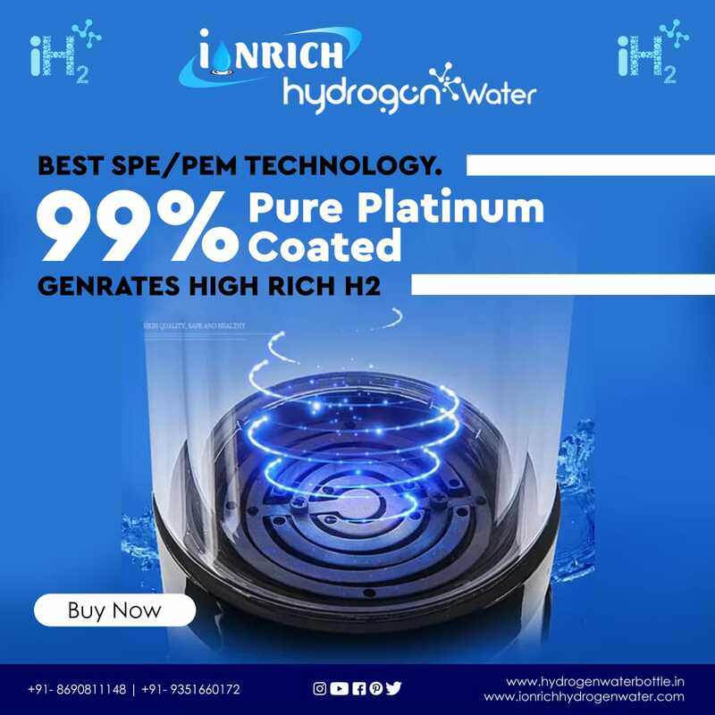 DESCRIPTION OF IONRICH HYDROGEN WATER • Ionrich hydrogen water bottle generates 800-3000ppb level of hydrogen which is recommended as safe to drink and have therapeutic heath benefits. • Ionrich hydrogen water bottle came with Free TDS controlling valve, TDS meter and cleaning solution. • TDS controlling valve is installed in your RO system where you can set TDS level of water between 100-200ppm (as per WHO standards). • TDS play very important role in Hydrogen water. For more information contact us mail us call us and follow us on YouTube, Facebook, and Instagram. IONIZATION TECHNOLOGY: - • SPE/PEM Technology: 5 GENERATIONS Molecular Hydrogen Generator Produces BEST ANTIOXIDANT for YOU. • Molecular hydrogen is a NOVEL ANTIOXIDANT to efficiently reduce oxidative stress and improvement of mitochondrial diseases. ELECTROLYSIS PLATE: - • Ti Titanium medical grade Plate ASTM Eli with 99.9% platinum coating. (Patented sintering technology with IONRICH HYDROGEN WATER) SECRET OF WATER TDS (Total dissolve solids or mineral levels) LEVEL • It is very important to keep in mind the fact that the TDS level of your water (Total dissolve solids or mineral levels) plays an important part in determining the pH level of the water. • Based on our research and the testing of nearly 50000 samples of RO water at each and every home of our customers, we have found that the TDS level of RO water is much less than 50ppm, which has resulted in an acidic pH level, i.e. 2.5 pH to 5.5 pH level, which is causing the RO water to have an acidic pH level. • This is why we must first correct the TDS level of water, which is 100 ppm to 200 ppm as per WHO standards. Once the TDS level of water has been reset to 100 ppm it then reverts to the 6.5 ph to 7.5 ph (neutral) range. What is IONRICH hydrogen water? • Hydrogen water or hydrogen-rich water (also called hydrogen-enriched water) simply refers to pure water (H2O) which has hydrogen gas dissolved in it. • We can think of carbonated beverages (like soda water) that contain dissolved carbon dioxide (CO2), or oxygen water that contains dissolved oxygen (O2). Similarly, there is also water which contains dissolved molecule hydrogen. • Think of it this way: you can make hydrogen water by splitting water through electrolysis process, and then by make bubbling it into a glass of water. In short It is simply water that contains dissolved molecule hydrogen or H2. Is IONRICH hydrogen (H2) approved as a medicinal therapeutic? • According to a research study done by more than 1700 advanced researchers and more than 1500 published papers and studies, H2 (Molecular Hydrogen) demonstrated a promising therapeutic potential for more than 170 different disease models. • Doctors and practitioners from around the world have given their approval that H2 (Molecular Hydrogen) is efficient in treating human diseases models. • These studies also conclude that H2 (via hydrogen water/gas) has the potential to be therapeutic for virtually every human organ. BUY IONRICH HYDROGEN WATER BOTTLE • PEM ionization technology. • 100 pure platinum coated plates • FREE TDS controlling valve (Installed in RO) • FREE TDS meter (To measure your TDS level) BUY NOW BLOG Which is better Hydrogen water or alkaline water? https://www.hydrogenwaterbottle.in/pages/which-is-better-alkaline-water-or-hydrogen-water-/62b7fc0c322711000145f24f Ionrich Hydrogen water benefits in Brains and Neuro. https://www.hydrogenwaterbottle.in/pages/brain-stroke-and-hydrogen-ih2-research/62b326df76ac270001bdffac FAQ (Frequently asked question) clear your doubts. https://www.hydrogenwaterbottle.in/pages/faq/628e7918c943f30001239041 Ionrich Hydrogen water benefits in Cancer https://www.hydrogenwaterbottle.in/pages/cancer-and-hydrogen-water-research/62921b52155ad000017bc052 We are leading supplier and manufacturer of hydrogen water machine, hydrogen water bottle, hydrogen water purifier, hydrogen inhalation machine, hydrogen water spa in India.