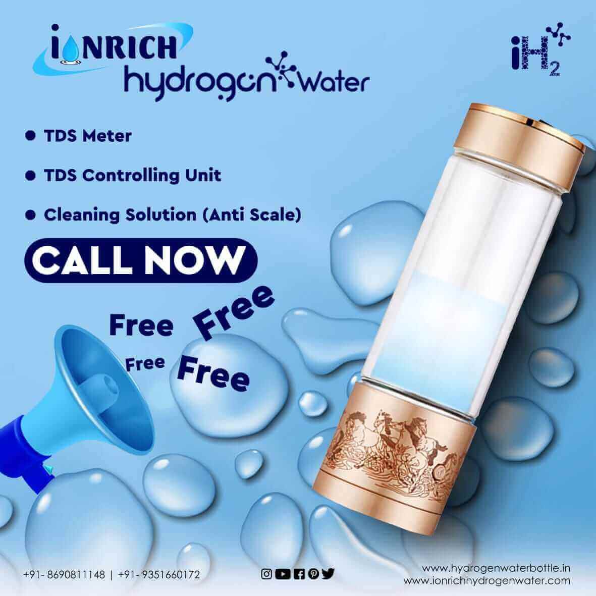DESCRIPTION OF IONRICH HYDROGEN WATER Ionrich hydrogen water bottle generates 800-3000ppb level of hydrogen which is recommended as safe to drink and have therapeutic heath benefits. Ionrich hydrogen water bottle came with Free TDS controlling valve, TDS meter and cleaning solution. TDS controlling valve is installed in your RO system where you can set TDS level of water between 100-200ppm (as per WHO standards). TDS play very important role in Hydrogen water. For more information contact us mail us call us and follow us on YouTube, Facebook, and Instagram. IONIZATION TECHNOLOGY: - SPE/PEM Technology: 5 GENERATION Molecular Hydrogen Generator Produces BEST ANTIOXIDANT for YOU; Molecular hydrogen is a NOVEL ANTIOXIDANT to efficiently reduce oxidative stress and improvement of mitochondrial diseases. ELECTROLYSIS PLATE: - Ti Titanium medical grade Plate ASTM eliv with 99.9% platinum coating. (Patented sintering technology with IONRICH HYDROGEN WATER) SECRET OF WATER TDS (Total dissolve solids or mineral levels) LEVEL It is very important to keep in mind the fact that the TDS level of your water (Total dissolve solids or mineral levels) plays an important part in determining the pH level of the water. Based on our research and the testing of nearly 50000 samples of RO water at each and every home of our customers, we have found that the TDS level of RO water is much less than 50ppm, which has resulted in an acidic pH level, i.e. 2.5 pH to 5.5 pH level, which is causing the RO water to have an acidic pH level. This is why we must first correct the TDS level of water, which is 100 ppm to 200 ppm as per WHO standards. Once the TDS level of water has been reset to 100 ppm it then reverts to the 6.5 ph to 7.5 ph (neutral) range. BUY IONRICH HYDROGEN WATER BOTTLE • PEM ionization technology. • 100 pure platinum coated plates • FREE TDS controlling valve (Installed in RO) • FREE TDS meter (To measure your TDS level) BUY NOW What is IONRICH hydrogen water? Hydrogen water or hydrogen-rich water (also called hydrogen-enriched water) simply refers to pure water (H2O) which has hydrogen gas dissolved in it. We can think of carbonated beverages (like soda water) that contain dissolved carbon dioxide (CO2), or oxygen water that contains dissolved oxygen (O2). Similarly, there is also water which contains dissolved molecule hydrogen. Think of it this way: you can make hydrogen water by splitting water through electrolysis process, and then by make bubbling it into a glass of water. In short It is simply water that contains dissolved molecule hydrogen or H2. Is IONRICH hydrogen (H2) approved as a medicinal therapeutic? According to a research study done by more than 1700 advanced researchers and more than 1500 published papers and studies, H2 (Molecular Hydrogen) demonstrated a promising therapeutic potential for more than 170 different disease models, and various doctors and practitioners from around the world have given their approval that H2 (Molecular Hydrogen) is efficient in treating human diseases models. These studies also conclude that H2 (via hydrogen water/gas) has the potential to be therapeutic for virtually every human organ. Research done by:- Department of Biochemistry and Cell Biology, Institute of Development and Aging Sciences, Graduate School of Medicine, Nippon Medical School, Kawasaki, Japan What are Hydrogen water health benefits? Water that has been infused with hydrogen gas is hydrogen water. Some resources suggest that adding hydrogen to water increases its anti-inflammatory and antioxidant properties. The following are some potential molecular hydrogen health benefits: Antioxidant properties Anti-inflammatory Anti-allergenic Anti-diabetic Anti-obesity Anti-tumor Anti-cell death Gene Expression Cell Modulation Up-Regulation of body's antioxidants Neuroprotective Radioprotective DNA & RNA protective Improvement of cognitive function Research done by:- (1) Department of Biomedical Sciences in Sport, University of Novi Sad, Serbia, and University of Belgrade School of Medicine, Serbia (2) Heart, Lung and Esophageal Surgery Institute; Thomas E Starzl Transplantation Institute, Department of Surgery, University of Pittsburgh Medical Center, Pittsburgh, Pennsylvania, USA (3) Department of Radiation Medicine, Faculty of Naval Medicine, Second Military Medical University, Shanghai, China. (4) (4)Institute of Experimental Medicine, Czech Academy of Sciences, Prague, Czech Republic. (5) (5)Department of Anaesthesiology, Changzheng Hospital, Second Military Medical University, Shanghai, PR China Hydrogen water benefits Hydrogen water is regular water infused with hydrogen gas. Hydrogen gas is believed to have anti-inflammatory and antioxidant properties when it is added to water. There is evidence in research that it can increase energy, slow down aging, and improve muscle recovery after exercise. Researchers have found that molecular hydrogen water can reduce radiation therapy side effects. Researchers at Japan medical university found that drinking hydrogen-rich water during radiation therapy could improve quality of life for 49 patients with liver cancer. Is tap water, filter water or Ro water, have Hydrogen. In It? There is hydrogen and oxygen in all water and the formula for water is H2O. The hydrogen atoms in water are bound to the water molecule and are not available to the body as a free molecule; therefore, normal water will not be therapeutic use. Water that has been infused with hydrogen gas (H2) is called hydrogen water or hydrogen-rich water. Therefore, hydrogen molecules (H2) are dissolved into the water, but they do not actually bond with water i.e. H2O. In this sense, it is similar to carbonated beverages like soda enriched with carbon dioxide (carbon dioxide gas) or oxygenated water, rich in oxygen (oxygen gas). In numerous scientific papers, hydrogen water is referred to as a beverage that provides therapeutic benefits and is represented by numerous references in sc