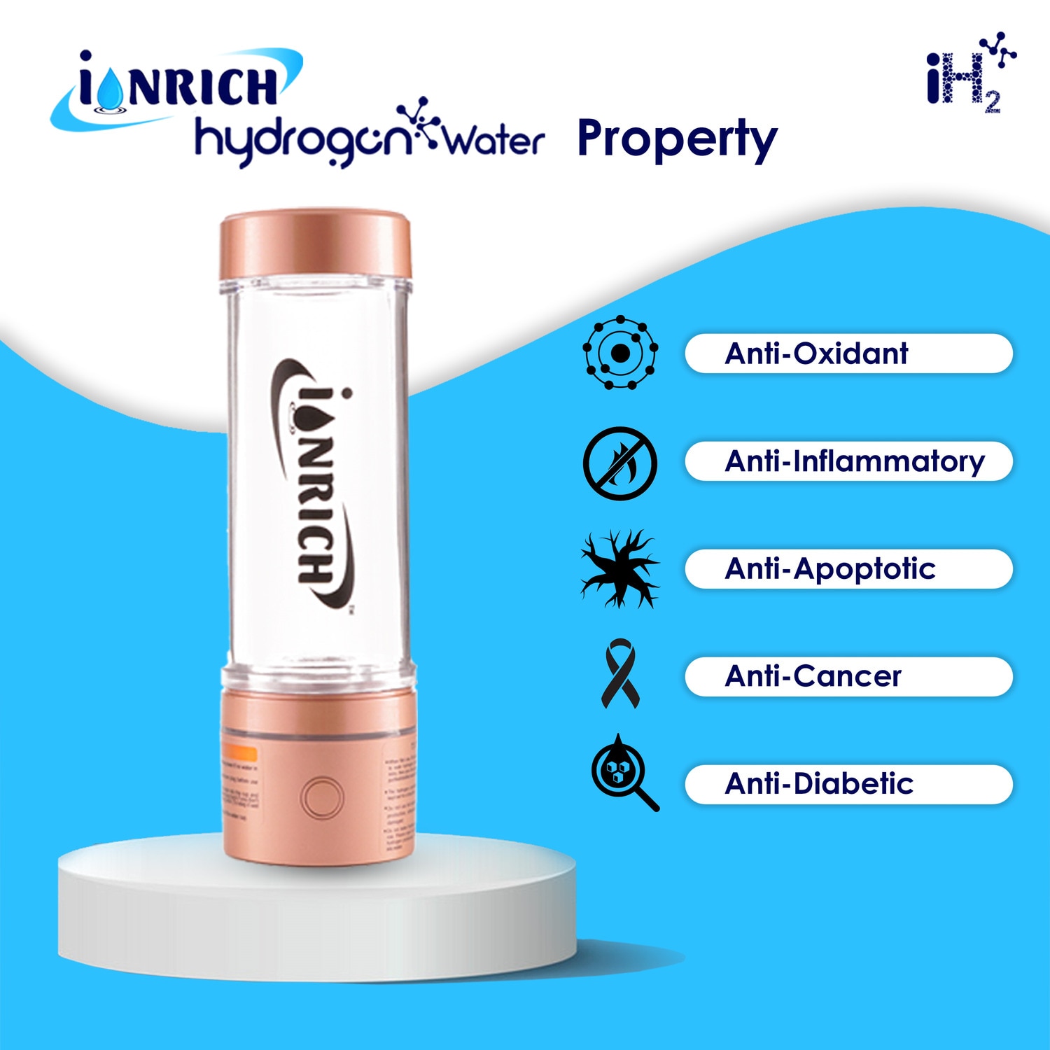 check more information on YOUTUBE AMAZON INSTAGRAM Why Ionrich is the Best Choice 1. HYDROGEN PROPERTIES: - Hydrogen H2 have Antioxidant, Anti-Inflammatory and Anti - Apoptotic properties which gives you 100+ health benefits. 2. SPE-PEM Technology: Ionrich uses Solid Polymer Electrolyte-Proton Exchange Membrane (SPE-PEM) technology, the gold standard for producing pure hydrogen water. This advanced method ensures chlorine-free and ozone-free water, eliminating harmful side effects associated with traditional electrolysis. 3. High Hydrogen Concentration (1500-4000 ppb): Ionrich generates hydrogen-rich water with a concentration of 1500-4000 ppb, well within the therapeutic range for maximum health benefits like improved energy, reduced inflammation, and better hydration. In one cycle of electrolysis Hydrogen H2 concentration reaches between 1500 ppb ~ up to 4000 ppb (Parts per Billion). The Hydrogen concentration varies as it depends upon TDS level of your purified water and its hardness etc factors. 4. How It Works: Unlike traditional hydrogen bottles, Ionrich SPE-PEM technology uses a membrane between electrodes to prevent chlorine and ozone from mixing with hydrogen water. This ensures 99.9% pure hydrogen infusion, making it safe and effective for daily use. 5. TDS LEVEL OF PURIFIED WATER: - Hydrogen concentration is depend upon the TDS level of purified water, During in many testing we have found that if TDS level of water is remains between 100 to 200 TDS than it have good conductivity of electrolysis hence hydrogen concentration reaches up to 4000 ppb+ , If TDS level remains between 50 to 100 TDS than Hydrogen concentration reaches up to 2000 ppb + Plus (Research facts with testing). So, we recommend you to use purified water have TDS range betwee100-200. 6. HOW MUCH HYDROGEN CONCENTRATION IS GOOD: - As per the various research reports the best concentration of Hydrogen is recommended minimum 1500 ppb for better human health USA Research. Further as per the research by Serbia it was recommended to drink 1900 ppb of Hydrogen water which benefits in Endurance power and increase stamina in Athletes. Further one of the research facts by Japanese Scientist it was recommended to drink 3500 ppb of hydrogen concentration which give good results in cardio health. So overall it was recommended hydrogen water range between 1500 ppb to 4000 for therapeutic health benefits of hydrogen water. 7. HOW MUCH HYDROGEN WATER SHOULD I DRINK DAILY: - as Ionrich hydrogen water bottle is 240 ml quantity hence as per the research fact it was recommended to drink minimum daily approx. 1.5 litre to 2 litre or 80 ounces (Oz) of hydrogen rich water to become more hydrated and active. So approx. it was recommended to drink at least minimum 5 bottles up to 10 Hydrogen bottle per day as per your convenience. 8. HOW TO MEASURE ACCURACY OF HYDROGEN CONCENTRATION: - As per Japanese Research, Methylene blue colloid platinum drops is using to measure accuracy of hydrogen concentration in water. Standards for measurement is One drop = 100 ppb. So if you put more than 20 drops and if colour of water become transparent than it was measures up to 2000 ppb. You can buy same from Amazon. 9. ELECTROLYSIS CELL CHAMBER QUALITY: - We used one of the latest technologies to developing our EXCELLENT class in category of hydrogen generating electrolysis cell. We used worlds premium quality of Platinum carbon catalyst for coating of Titanium anodes which have long lasting life without any calcification of plates. 10. LIFE OF ELECTROLYSIS CELL: - The life of electrolysis cells/ chamber is up to 9000 to 12000 times of electrolysis cycles, so per day if you use 10 times than it works up to 3 years. After three you must change the bottle NO REPLACEMENT because the plates quality will be Detroit, hence we recommend to changing the bottle. (This is the scientific fact that generating of hydrogen is dependent on quality of coating and catalyst and these two factors have limited life after that you need to replace). If some other brand clamming that life of hydrogen bottle is more than 5 years or more Than that will be gimmick 11. SALES AFTER SERVICE WARRANTY PERIOD: - The warranty period covers Electric parts like USB, PCB Circuit, Electrolysis cell/ Chamber for 01 Years from the date of sales Invoice. Further as it is battery operated product hence Battery warranty covers as per the international norms of 06 months. Further if you need any assistance in Service part, please contact us through help or directly through website. We will help you to give best Sales after service. 12. Health Benefits: Pure hydrogen water from Ionrich supports detoxification, boosts immunity, and provides antioxidant properties, helping you achieve better overall health.