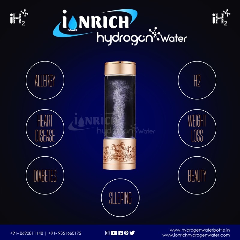 DESCRIPTION OF IONRICH HYDROGEN WATER • Ionrich hydrogen water bottle generates 800-3000ppb level of hydrogen which is recommended as safe to drink and have therapeutic heath benefits. • Ionrich hydrogen water bottle came with Free TDS controlling valve, TDS meter and cleaning solution. • TDS controlling valve is installed in your RO system where you can set TDS level of water between 100-200ppm (as per WHO standards). • TDS play very important role in Hydrogen water. For more information contact us mail us call us and follow us on YouTube, Facebook, and Instagram. IONIZATION TECHNOLOGY: - • SPE/PEM Technology: 5 GENERATIONS Molecular Hydrogen Generator Produces BEST ANTIOXIDANT for YOU. • Molecular hydrogen is a NOVEL ANTIOXIDANT to efficiently reduce oxidative stress and improvement of mitochondrial diseases. ELECTROLYSIS PLATE: - • Ti Titanium medical grade Plate ASTM Eli with 99.9% platinum coating. (Patented sintering technology with IONRICH HYDROGEN WATER)